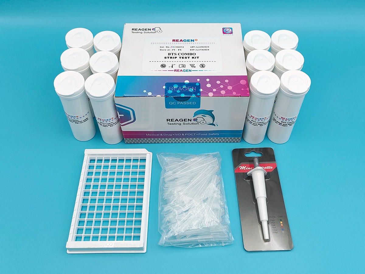 內(nèi)含:試劑板、金標(biāo)微孔、滴管、干燥劑、說明書(1 份/盒)